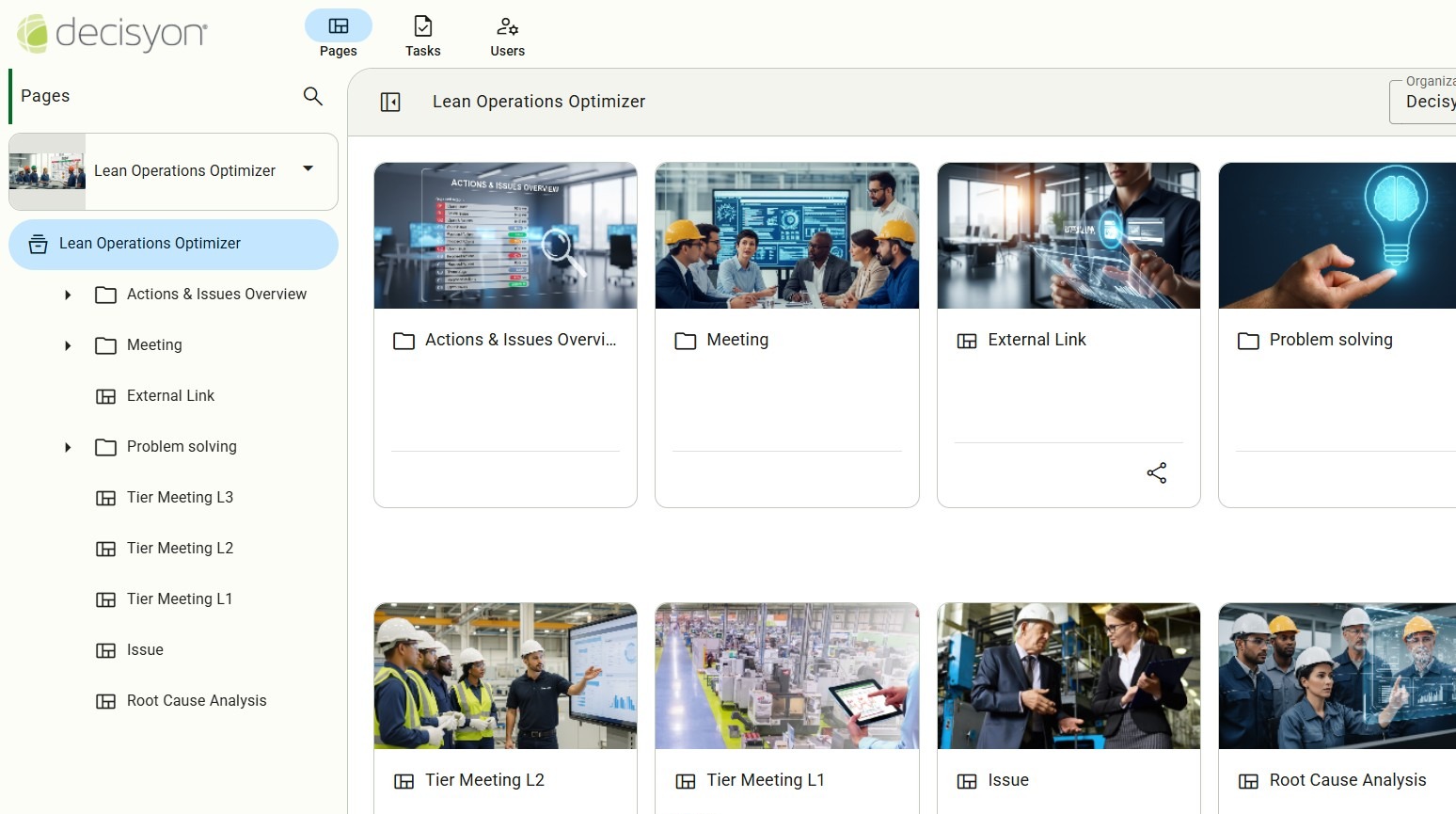 The Lean Operations Optimizer (Decisyon Loop) is a comprehensive digital solution designed to streamline factory operations by standardizing daily management routines from the production line up to the factory level.